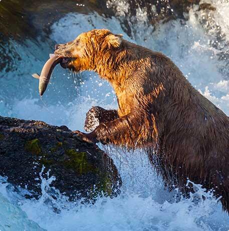 See bear, moose, goats and perhaps wolves in the Alaska wilderness.